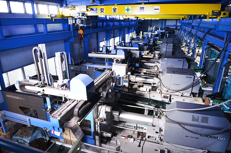 イトウ技電では、生産技術部(合理化推進チーム)を立ち上げ、成形品取出からゲートカットまでの自動化及び、組立加工で必要な治具などを自社製作し、作業者の負担を軽減し、生産性の向上を追求しています。*金型製作・塗装は協力工場にて対応