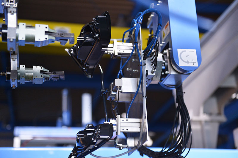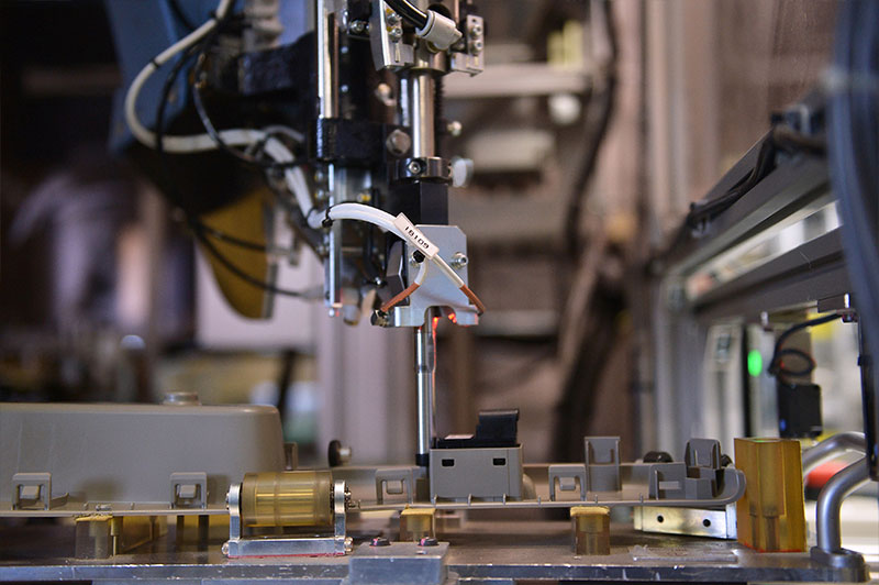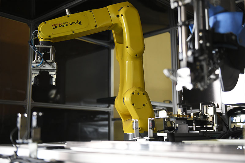 イトウ技電ではロボットを導入し、必要な治具を自社製作することで、組立加工業務の自動化をおこなっています。